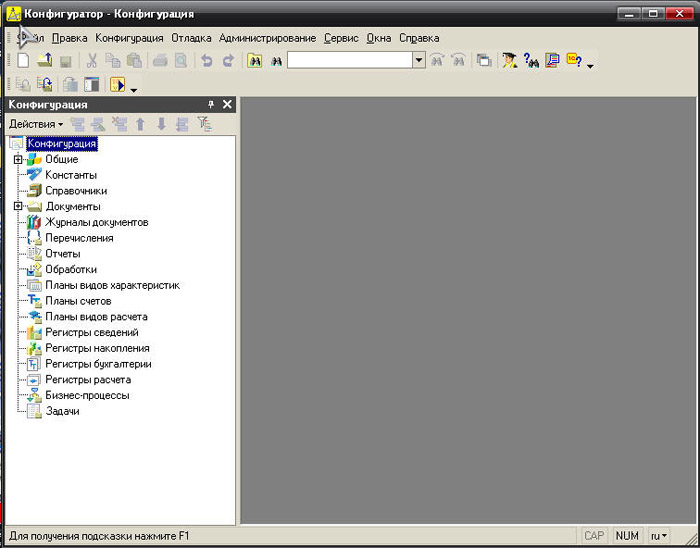 Можно сказать, что дерево конфигурации основной инструмент, с которым работает разработчик. Дерево конфигурации содержит в себе практически всю информацию о том, из чего состоит конфигурация: