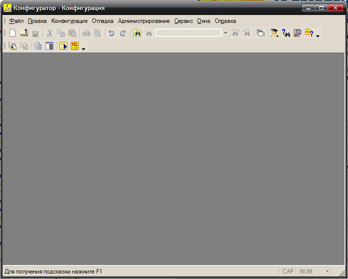 Итак, запустим «1С:Предприятие» в режиме конфигуратора. Перед вами окно конфигуратора. Именно с помощью этого инструмента мы будем создавать нашу конфигурацию. Большое количество незнакомых иконок на панели инструментов часто смущает начинающего разработчика. Не следует этого бояться - со временем вы сможете свободно ориентироваться среди них. Сначала пользуйтесь пунктами меню - и постепенно ваша работа сама собой переместится на панель инструментов. Выполним первую команду, с которой начинается работа с любой конфигурацией «Конфигурация|Открыть конфигурацию» . На экране откроется...